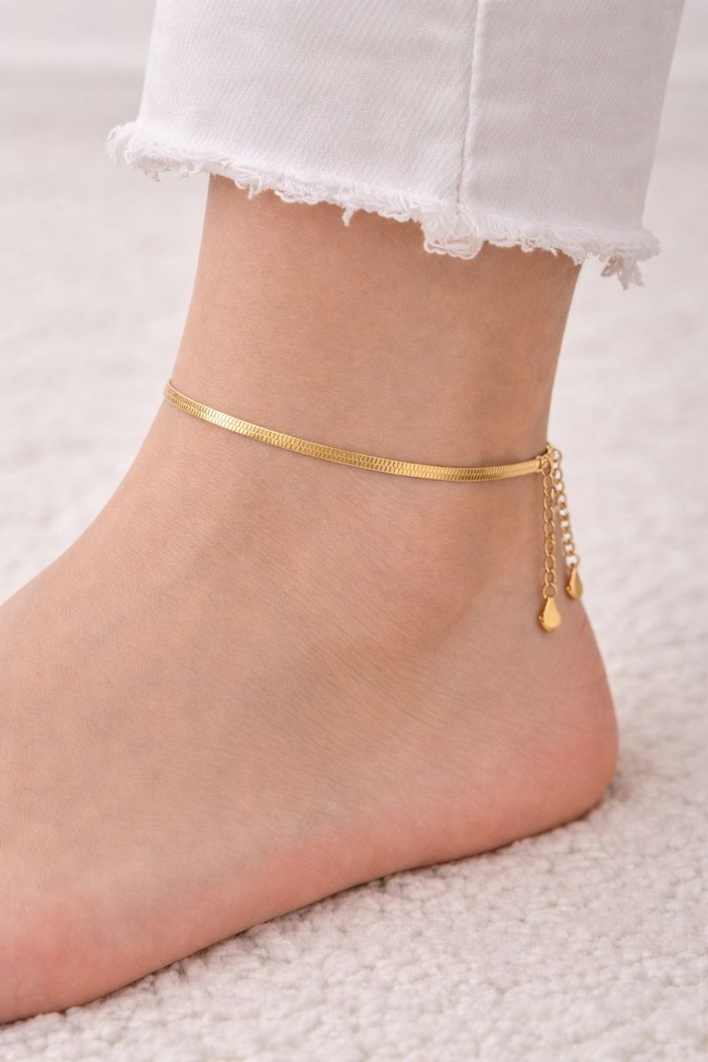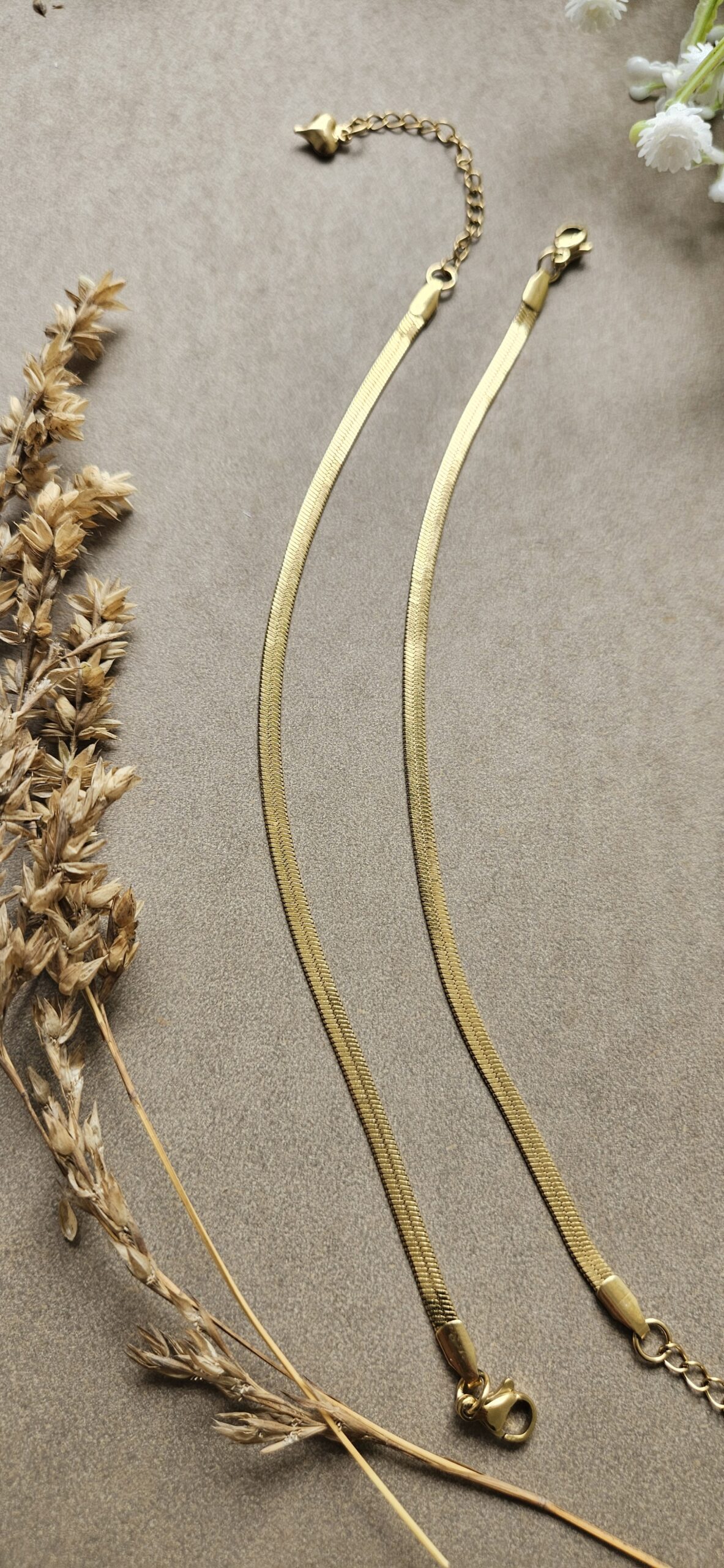 Minimalist snake chain anklet pair with a sleek, glossy finish. Anti-tarnish, water-resistant, and skin-friendly, designed to stay comfortable and shiny for everyday wear.