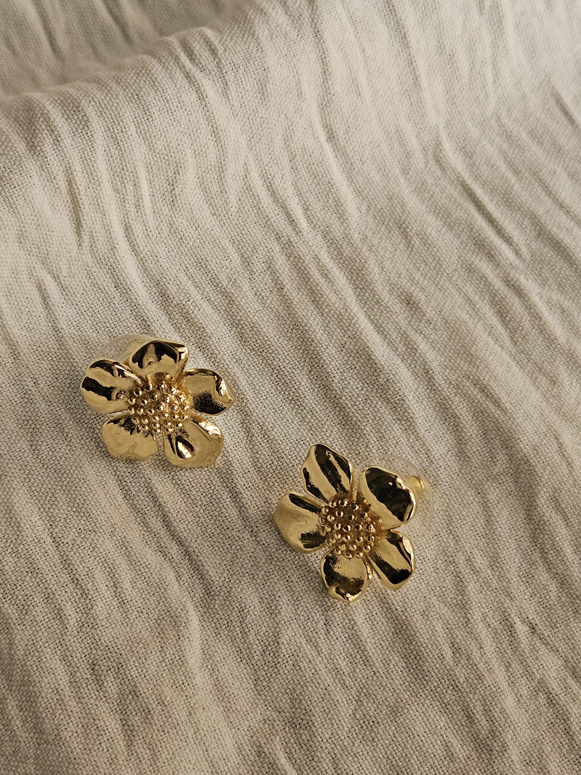 These Blossom Bloom earrings feature a beautiful flower design with 18k gold plating. Waterproof, sweat proof, and fade-resistant, they provide lasting elegance and durability for everyday wear.