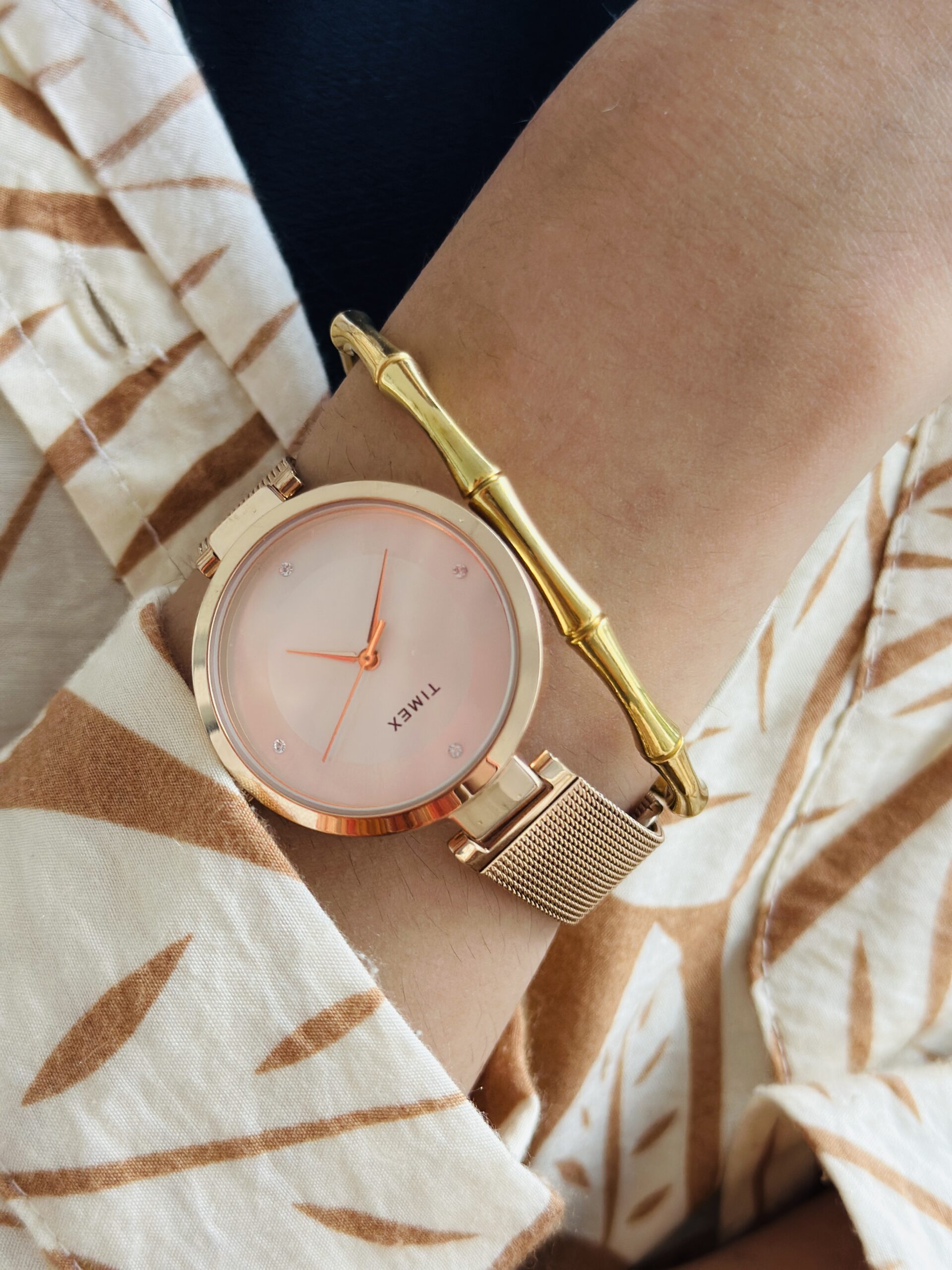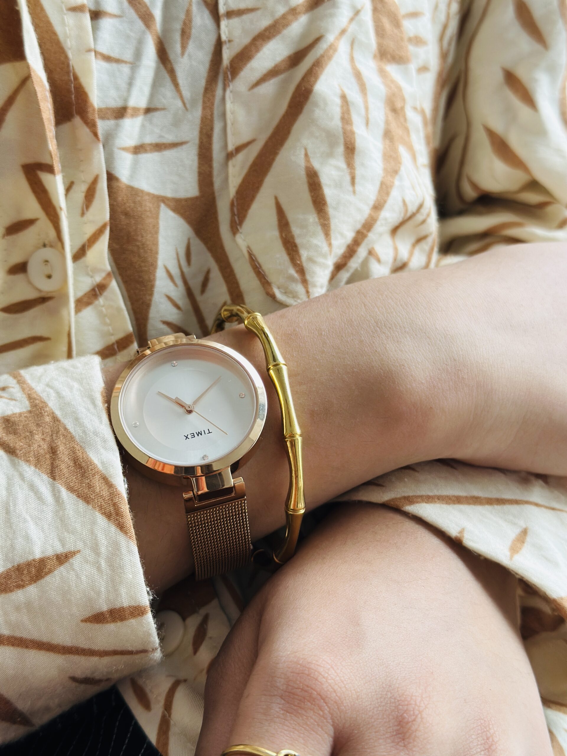 I usually can’t wear gold jewelry because my skin reacts, but this bracelet hasn’t given me any issues