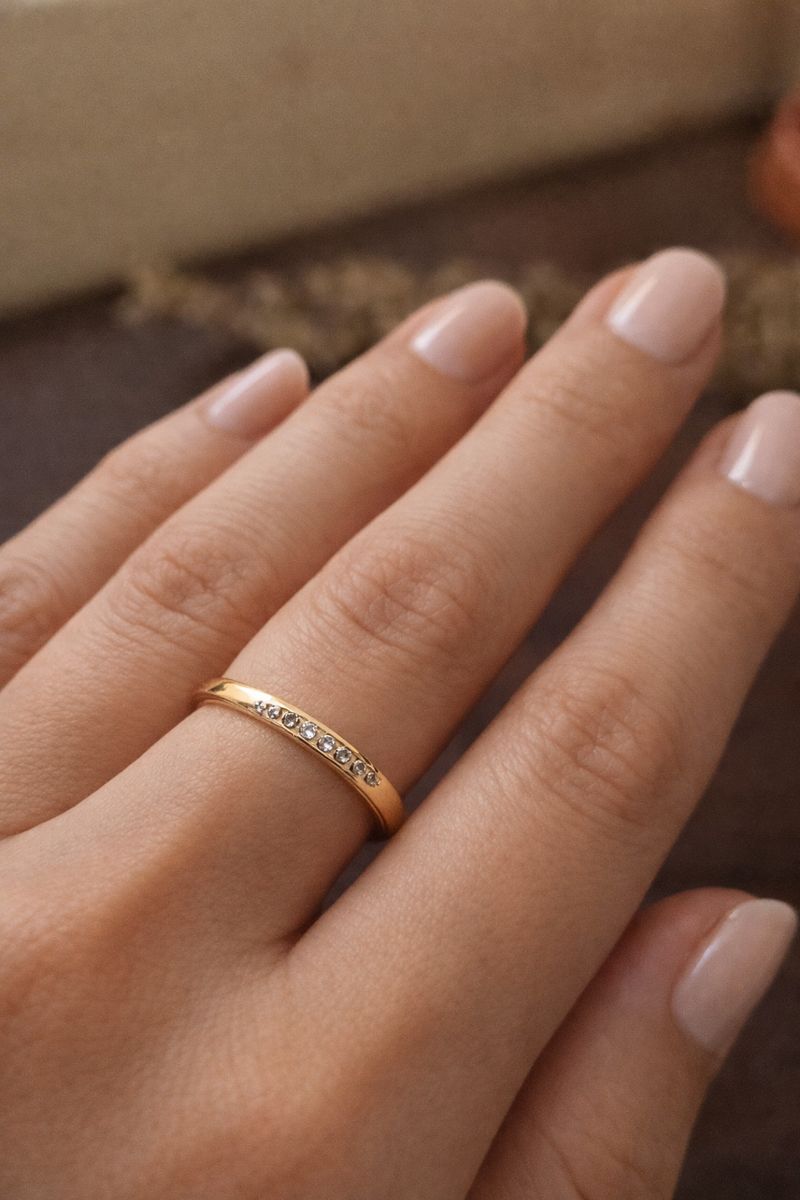 An elegant anti-tarnish ring adorned with high-quality AD stones. Designed to stay glossy and bright, even with regular use. Comfortable fit and premium craftsmanship.