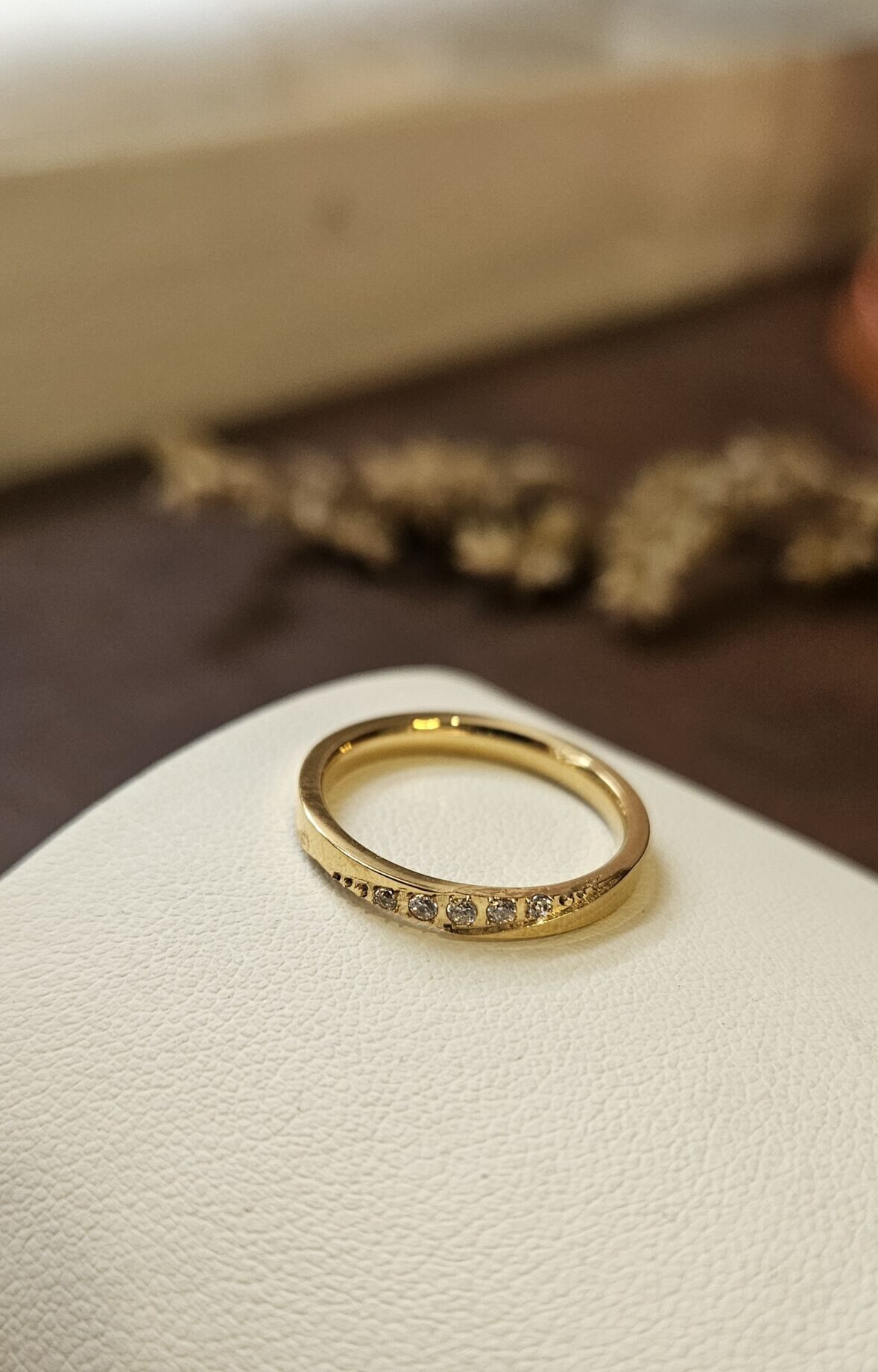Very pretty ring. Stones shine nicely and quality feels good