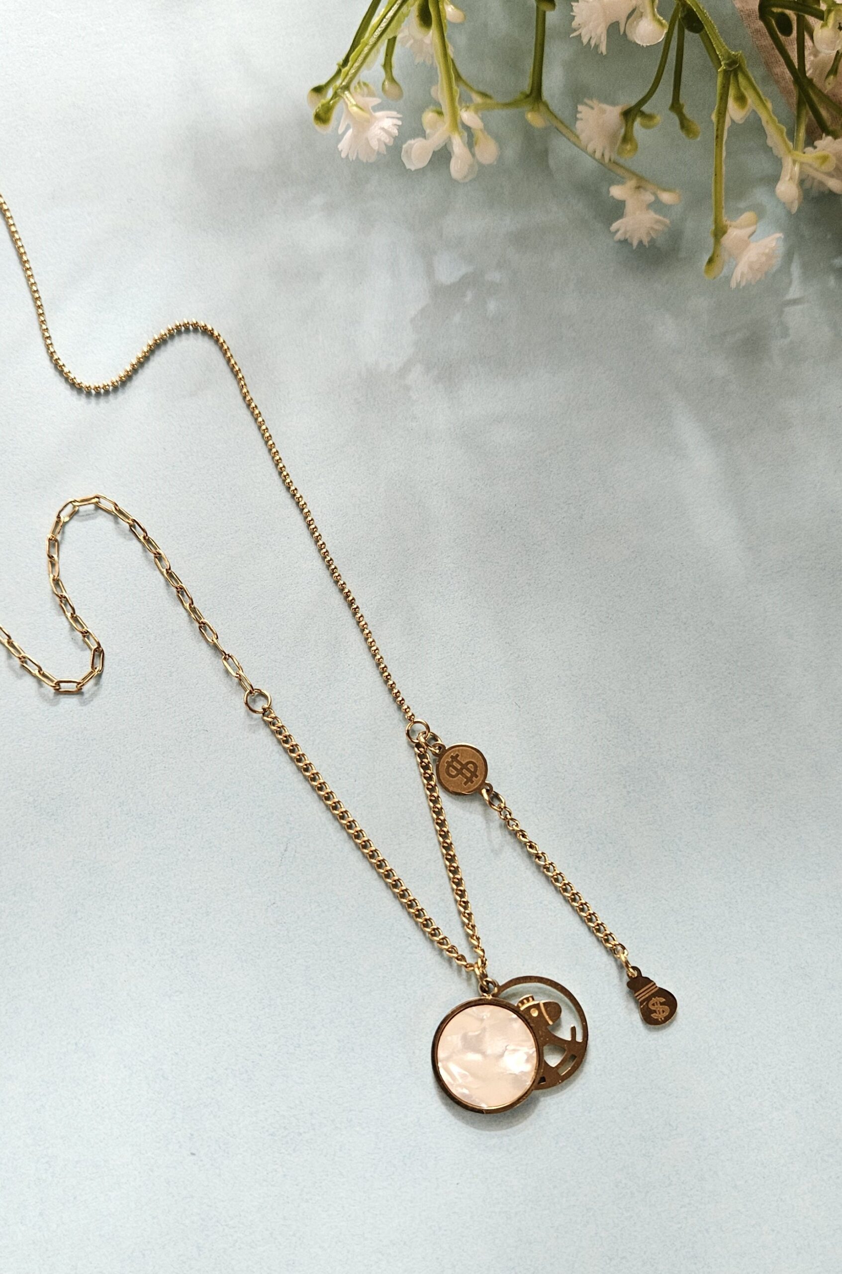 Elevate your everyday look with the Radiant Double Charm Necklace—a perfect blend of sophistication and durability. This refined gold chain carries two distinctive pendants: a sparkling cut-stone that catches the light, paired with a sleek, polished disc for contrast. Designed with premium anti-tarnish plating and crafted from skin-friendly materials, this piece is hypoallergenic and kind even to sensitive skin. Whether you’re caught in the rain, working up a sweat, or washing your hands, its sweat-proof and waterproof qualities ensure that radiant gold finish stays vibrant.