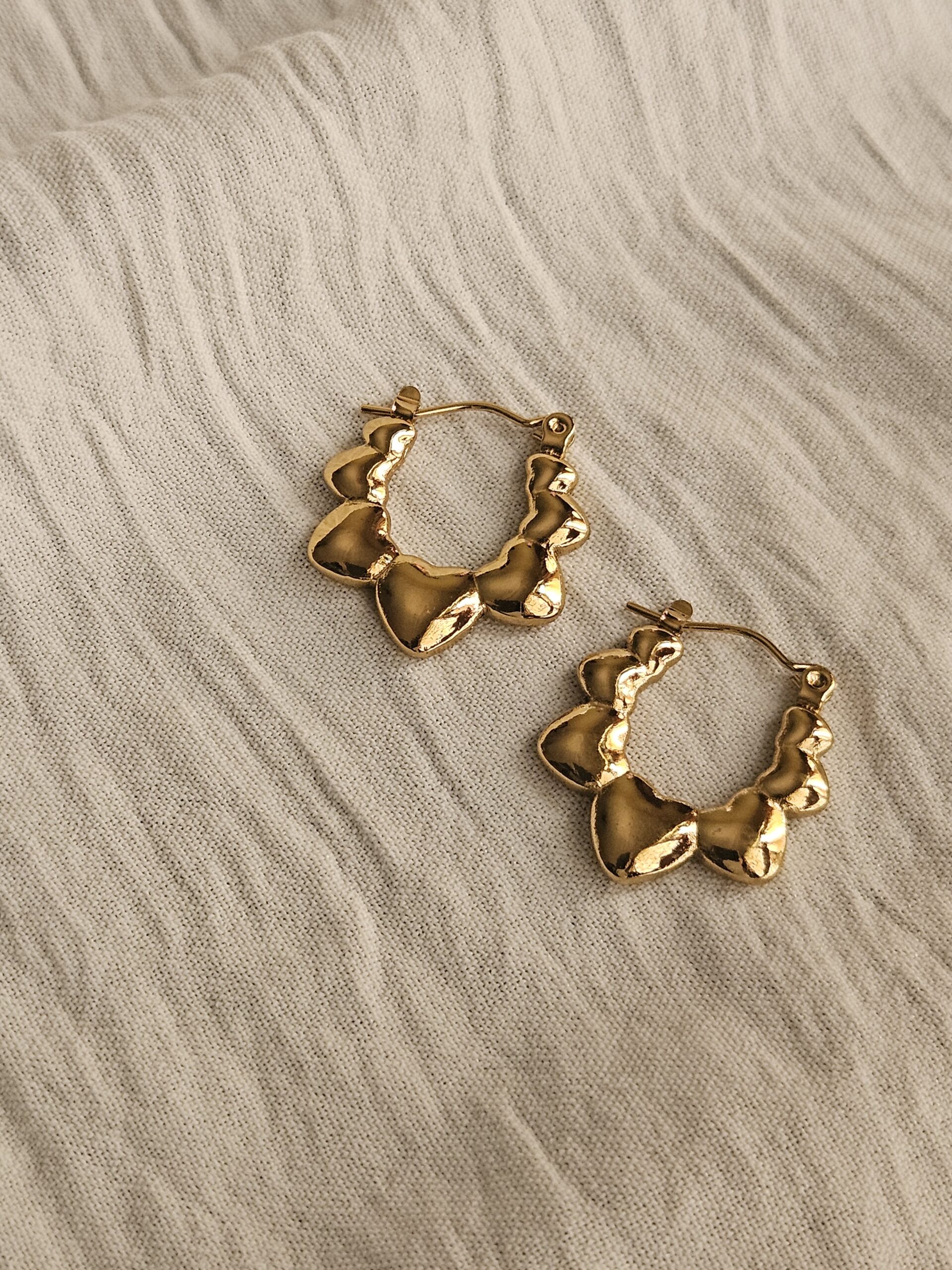 These stunning heart-shaped hoop earrings are plated with premium 18K gold, offering a romantic and elegant touch to any look. Water-resistant, sweat proof, hypoallergenic, and tarnish-resistant for daily wear.