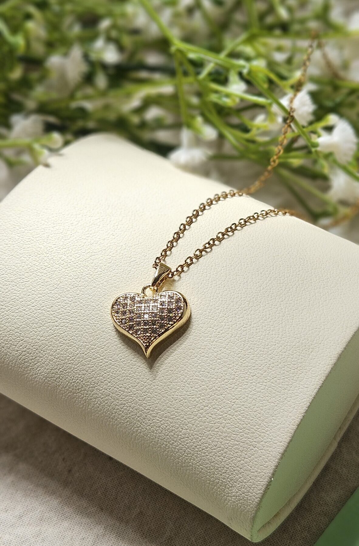 The heart design with a stone detail symbolizes love, light, and elegance.