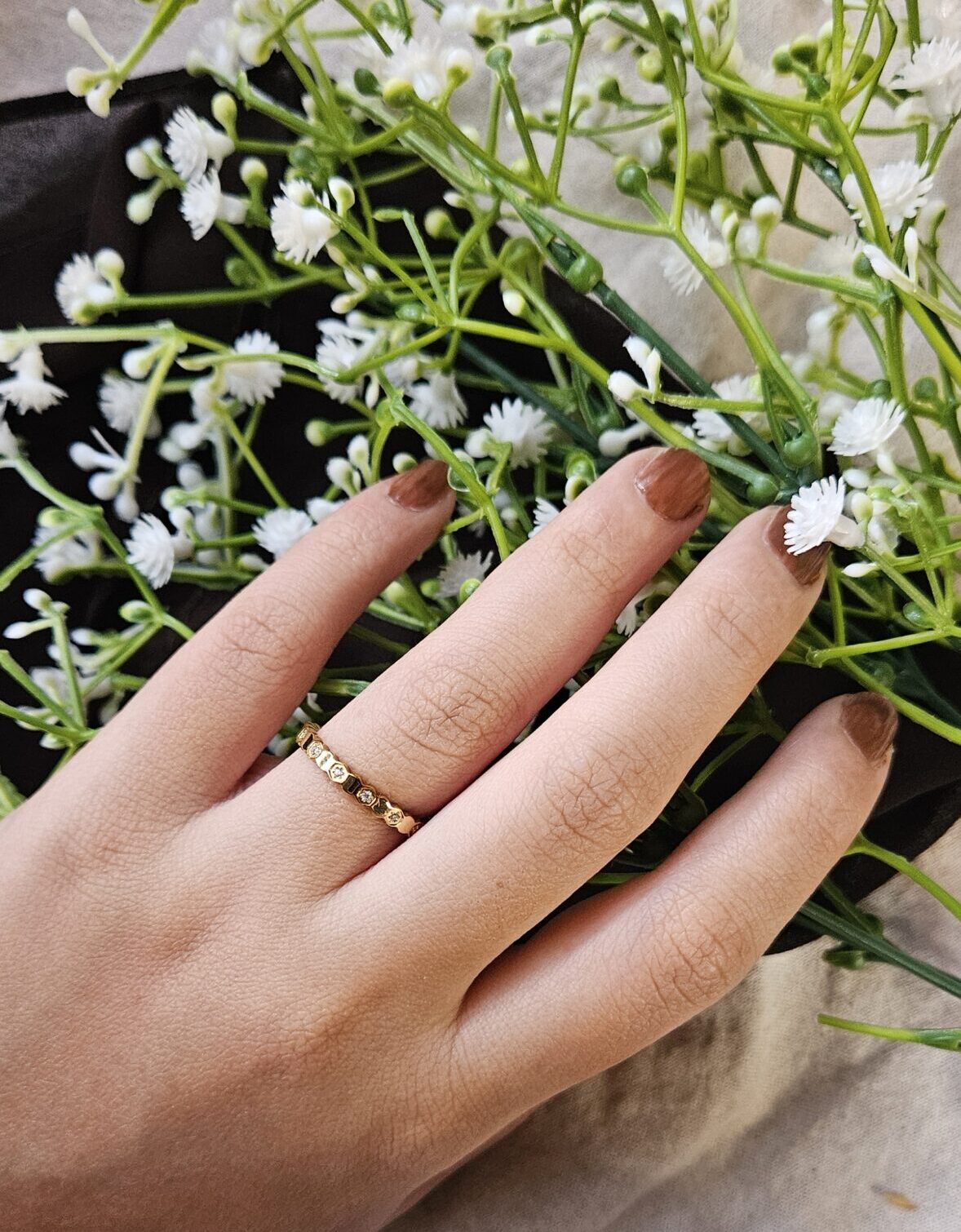 Elegant and minimal, this AD stone ring is crafted with a premium anti-tarnish finish for long-lasting shine. It is waterproof and skin-friendly, making it perfect for daily wear. Lightweight and comfortable, this ring adds a subtle sparkle to both casual and festive looks.
