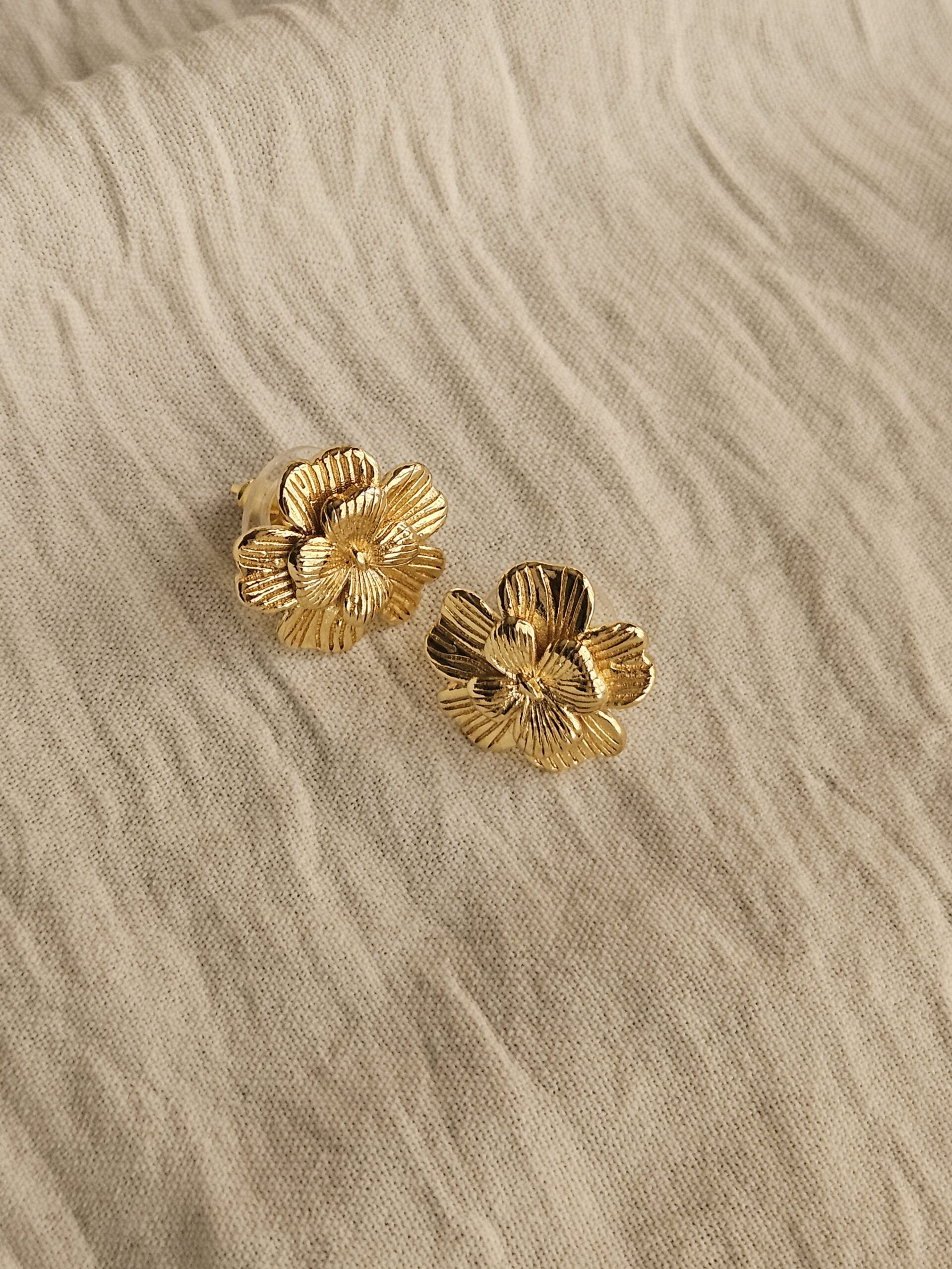 18k gold-plated Blooming Grace studs feature a beautiful flower design, offering lasting shine and durability.