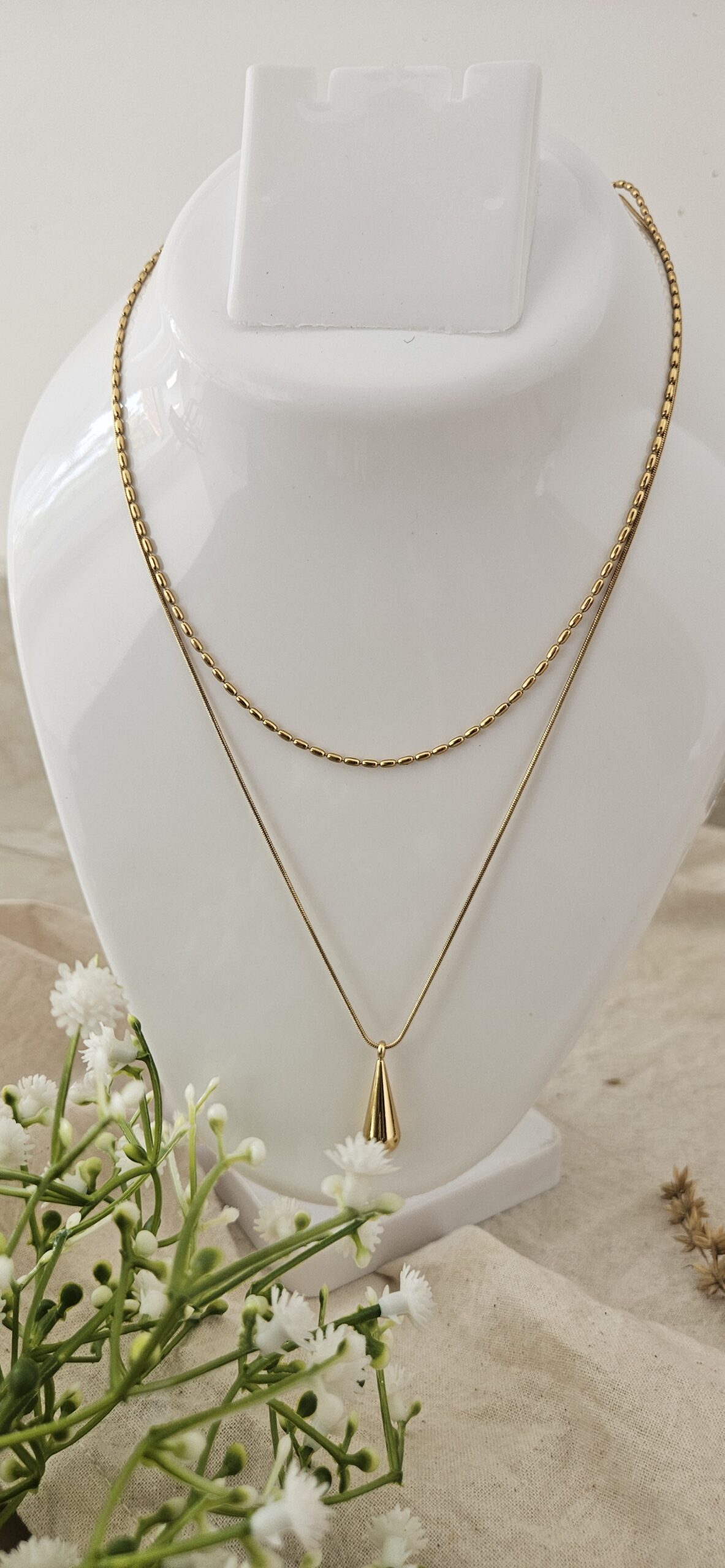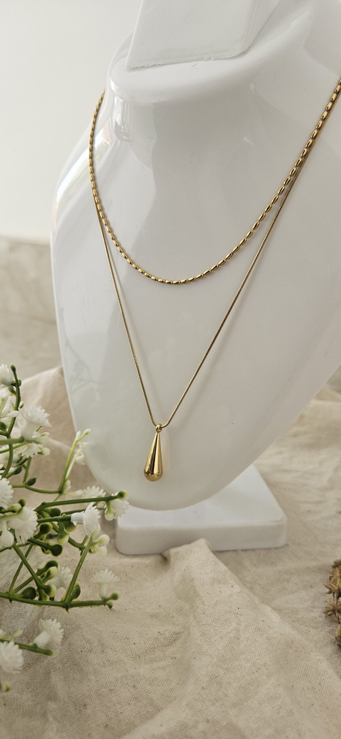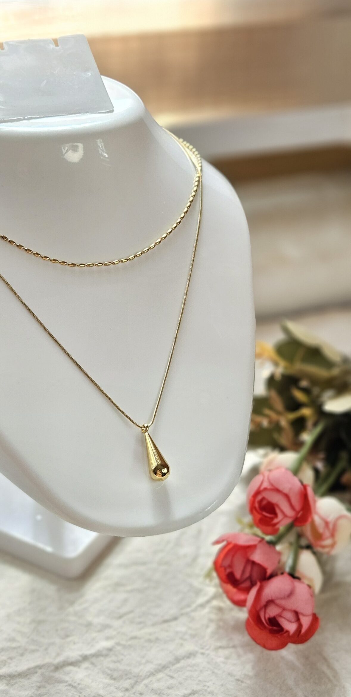Anti-tarnish layered necklace with a polished gold drop pendant. Waterproof, skin-friendly, and perfect for daily wear