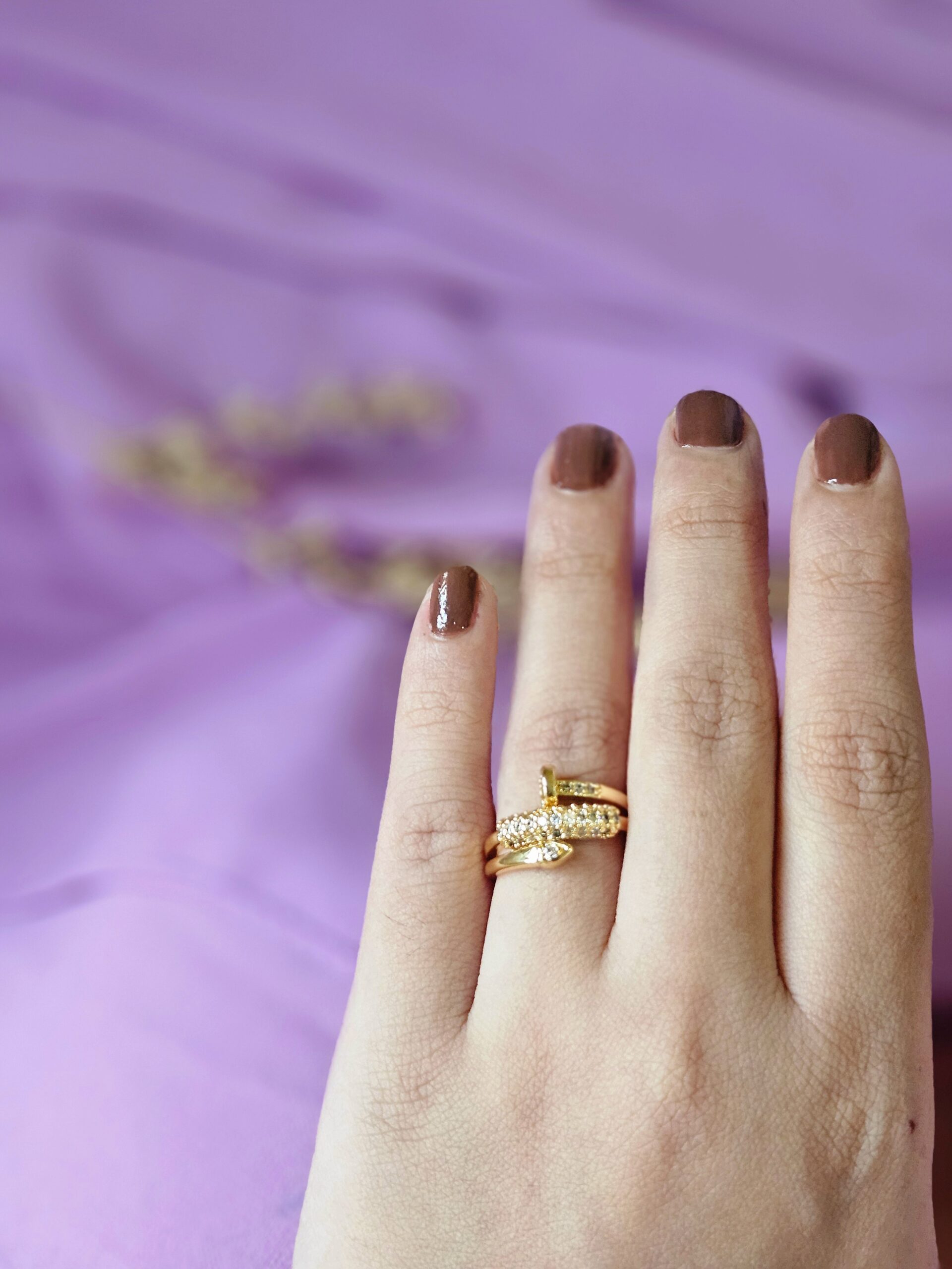 Make a confident statement with the Urbanelle Vero Arc ring – a bold and refined design that wraps your finger in luminous elegance. Inspired by strength and direction, this arrow-style band is finished in premium 18K gold plating and encrusted with shimmering stones that catch the light from every angle. Designed for daily wear, it’s sweatproof, waterproof, anti-tarnish, and completely skin-friendly. Whether worn solo or stacked, this ring brings both edge and elegance to your look.